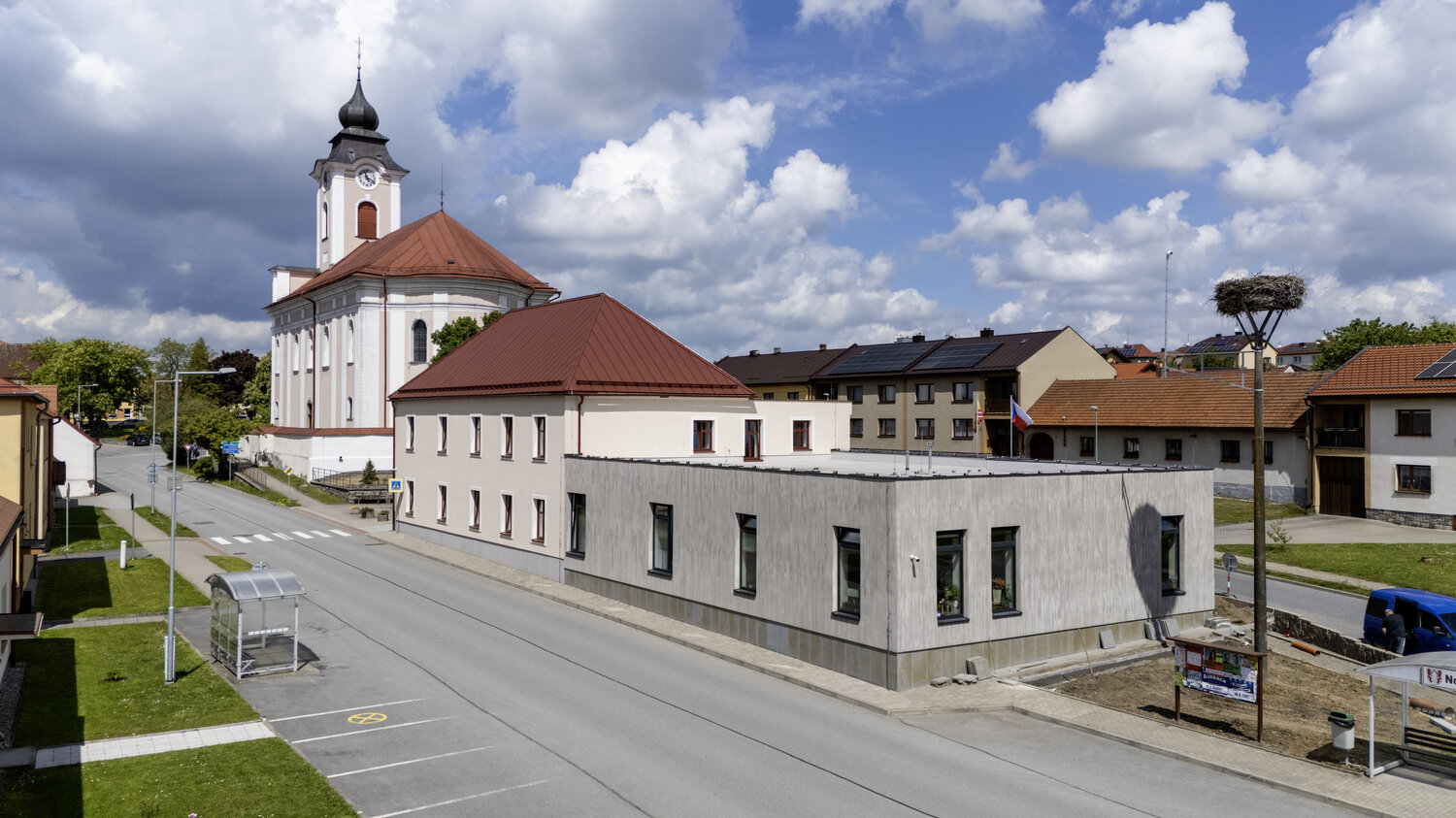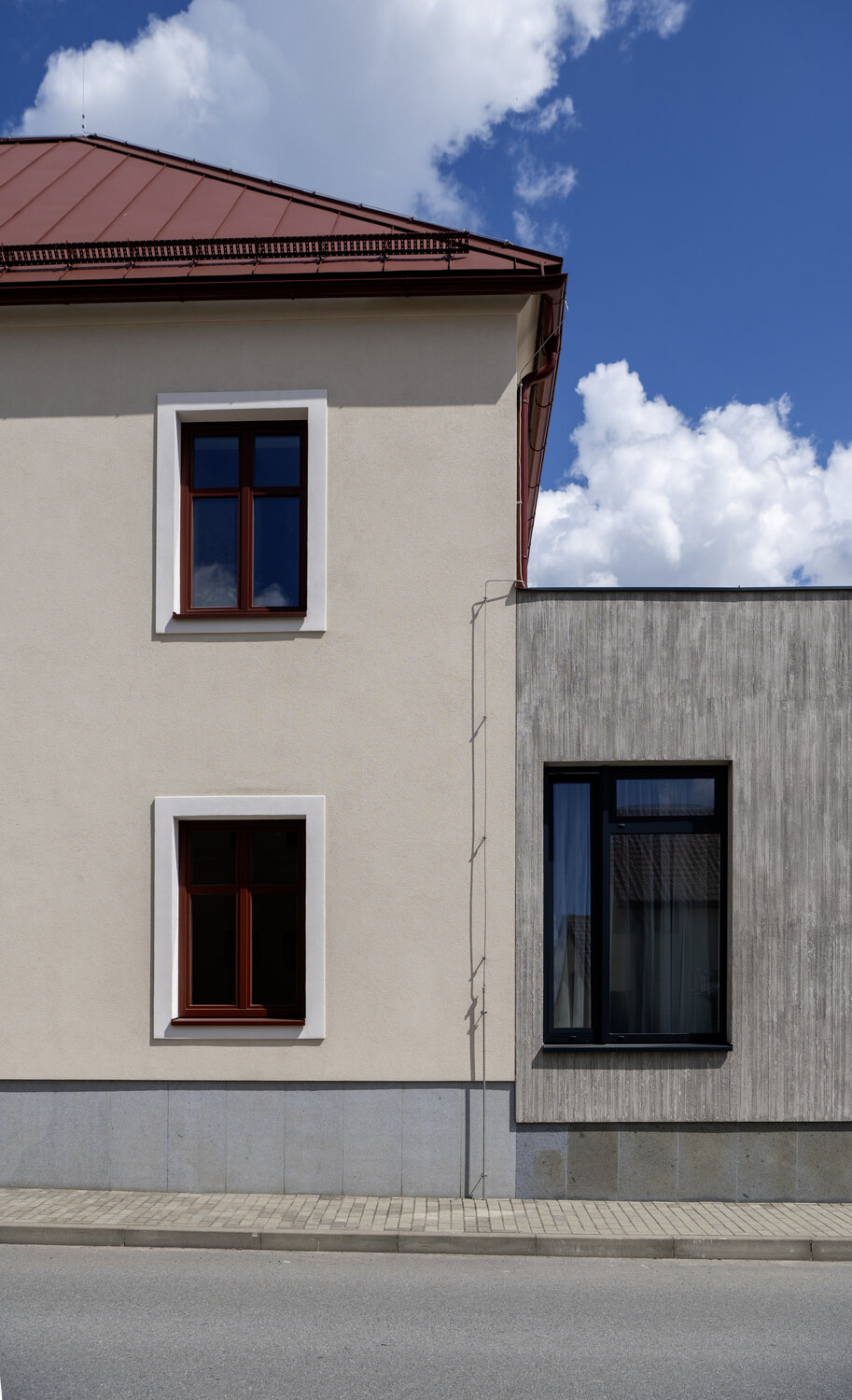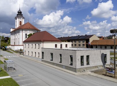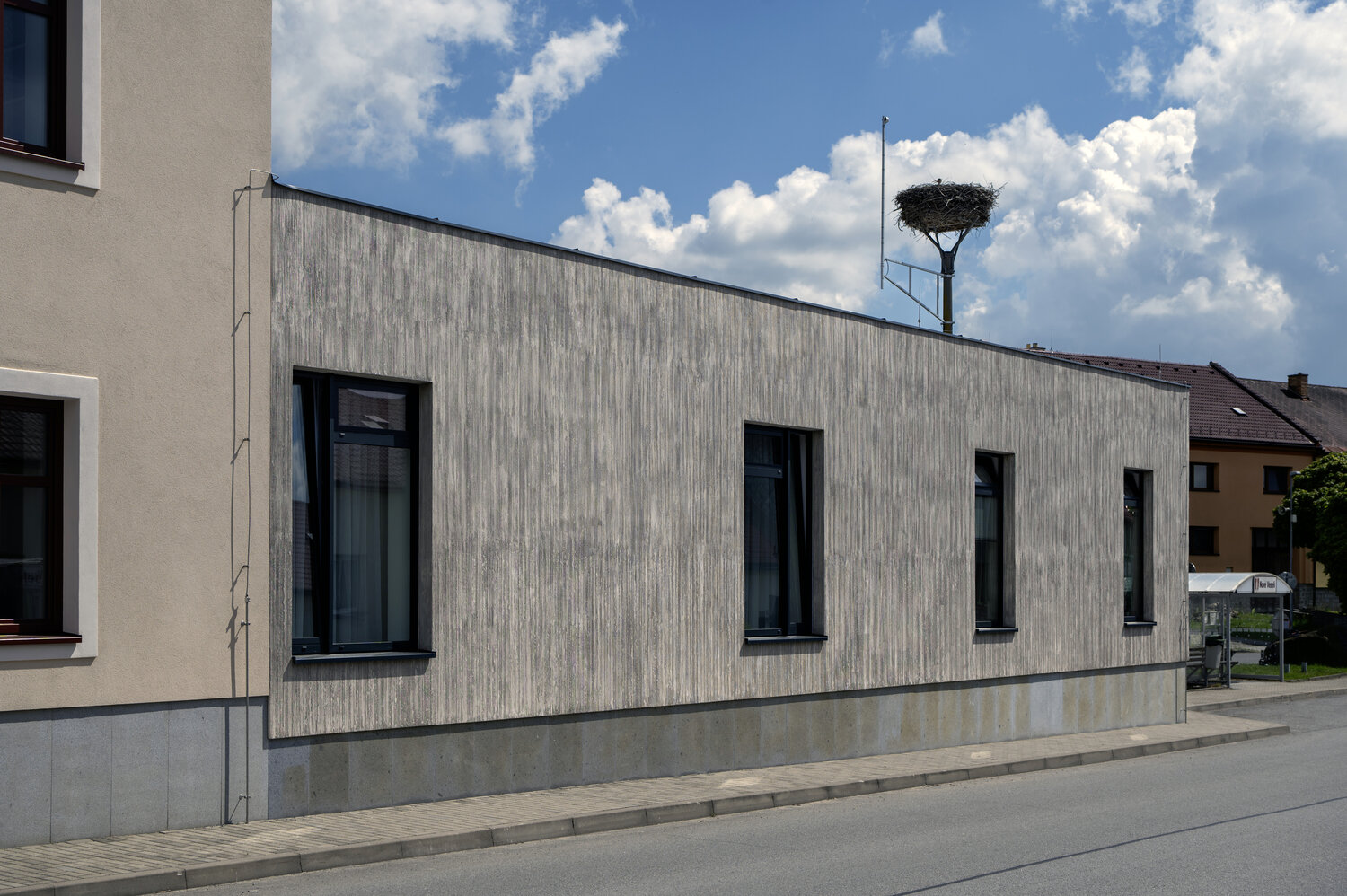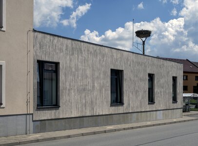 Každá nová fasáda stojí na starostlivo pripravenom podklade. Rovinnosť a kvalita podkladu zásadným spôsobom ovplyvňujú nielen vzhľad novej fasády, ale aj jej trvácnosť. Ak povrch podkladu nie je dobre vyrovnaný, pri nanášaní kreatívnej omietky môžu vzniknúť nerovnomerné vrstvy materiálu, ktoré budú následne viditeľné v konečnej úprave textúry. Ešte pred samotnou realizáciou je tiež dobré premyslieť si, ako bude vyzerať činnosť v okolí budovy. Vráťme sa späť do Nového Veselí. V prípade obecného úradu, t. j. verejnej budovy, možno v tejto oblasti očakávať vyššiu koncentráciu ľudí, čo znamená, že je potrebné venovať pozornosť bezpečnosti a odolnosti povrchu fasády. Z tohto dôvodu bol povrch fasády nakoniec pokrytý glazúrou, ktorá posilnila povrch omietky, čím sa zvýšila jej odolnosť voči mechanickému opotrebeniu a zároveň prispela k zjednoteniu farebného ladenia fasády ako celku.
