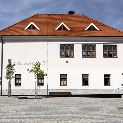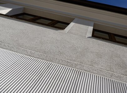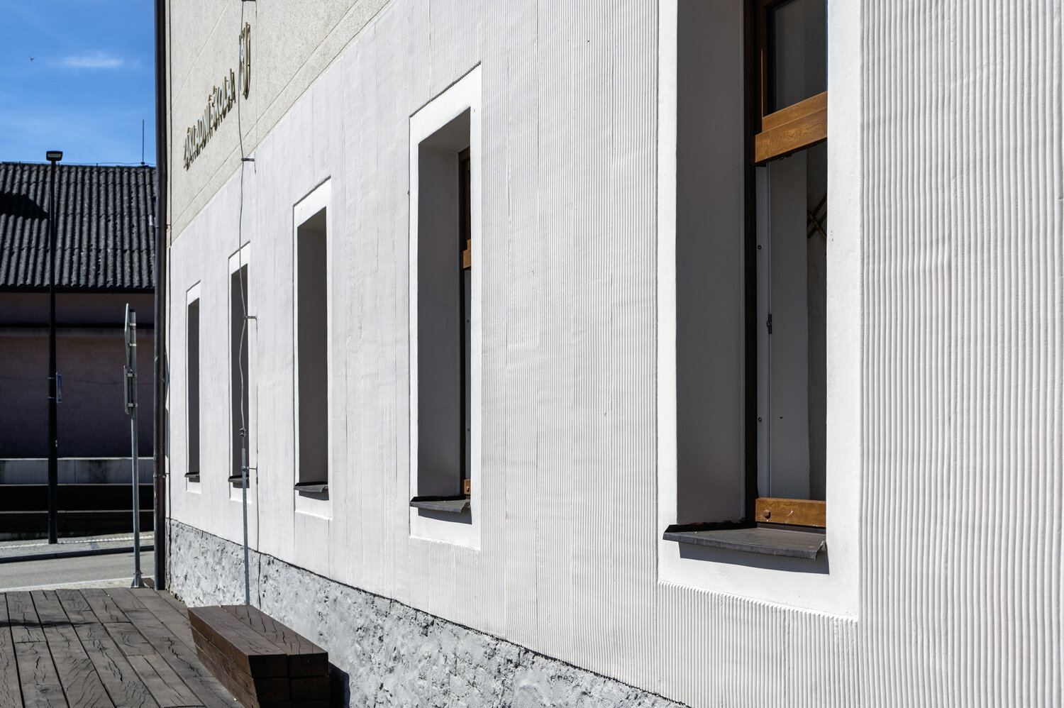 Aby bola fasáda ešte zaujímavejšia, v dolnej tretine fasády obecného úradu a budovy školy boli vytvorené plastické vertikálne vlny. Na tento účel bol zvolený kreatívny materiál 2710 FLEXI ŠTUK S VLÁKNOM.